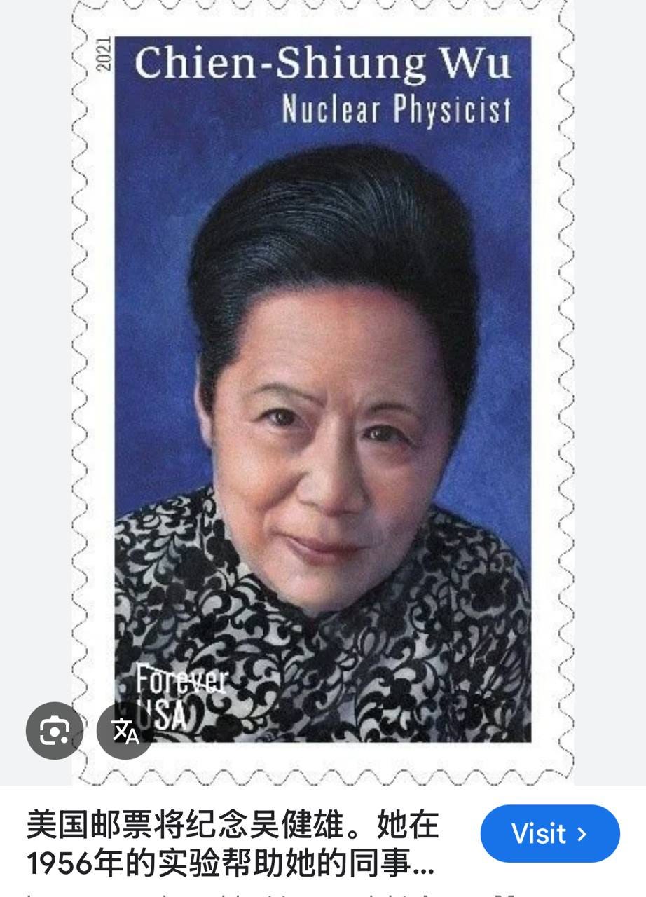TimmyH:“因为政治需要,在华人物理学家中,杨在中国的名气最大。但其实在美国李正道和吴健雄的名气并不差,美国邮政局还有吴健雄的纪念邮票。前些年我在哥伦比亚大学旁的商店里,看到李和吴作为哥大的知名校友,大照片挂在很醒目的地方。” “吴是哥大物理系第一位女教授,后来还是美国物理学会第一位女会长。当时还没有什么DEI乌七八糟的东西,她完全是以自己的学术成就得到同行的尊敬。”