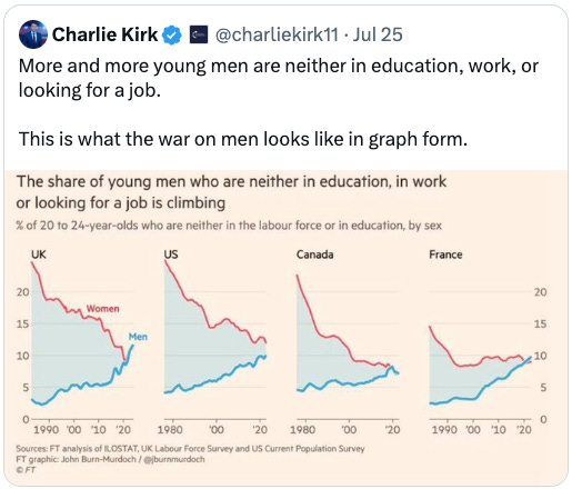在各大发达经济体中,男性的失业率持续上升,这在一定程度上可以视为女权运动所带来的结构性社会变迁的副产品。