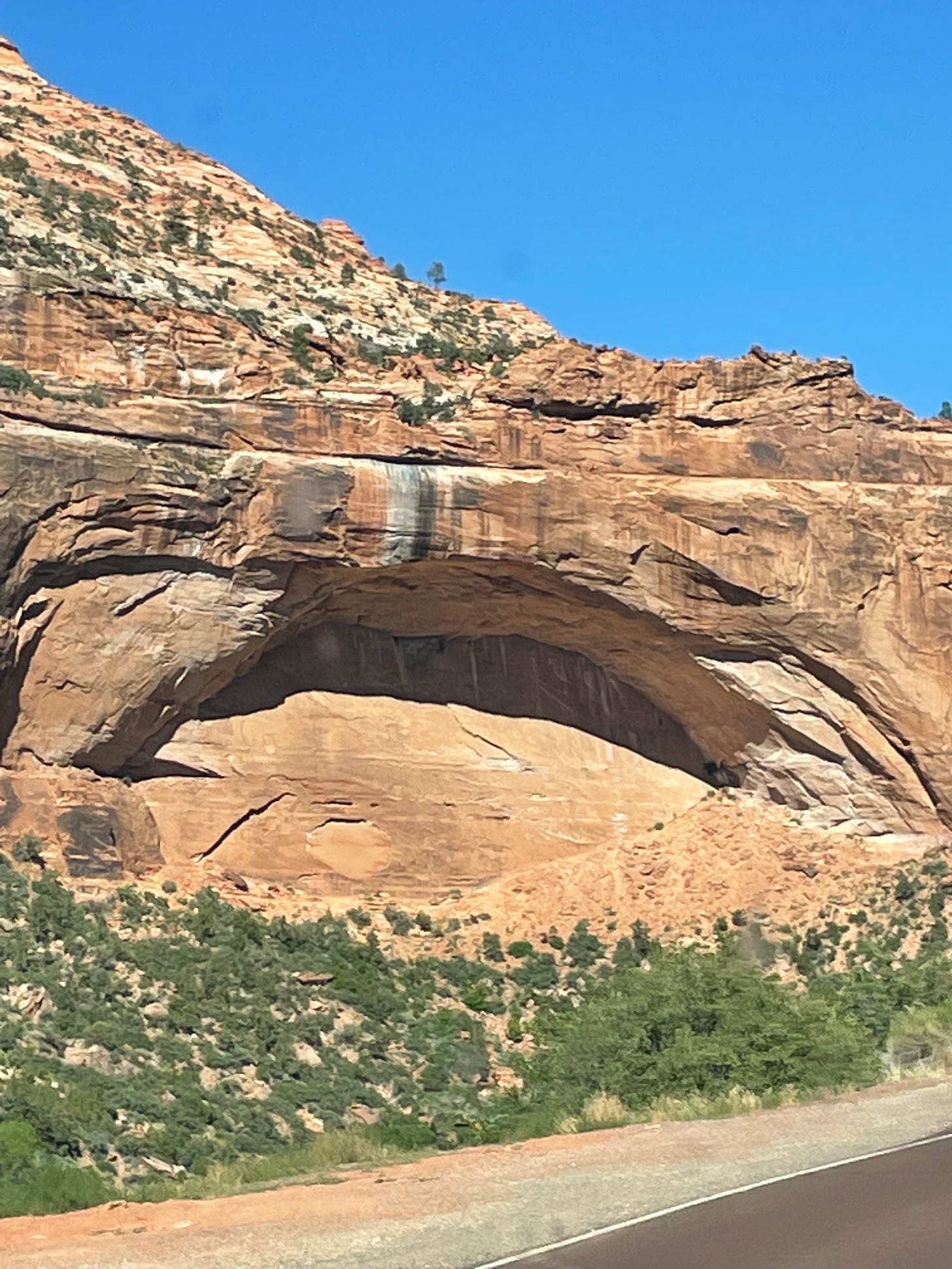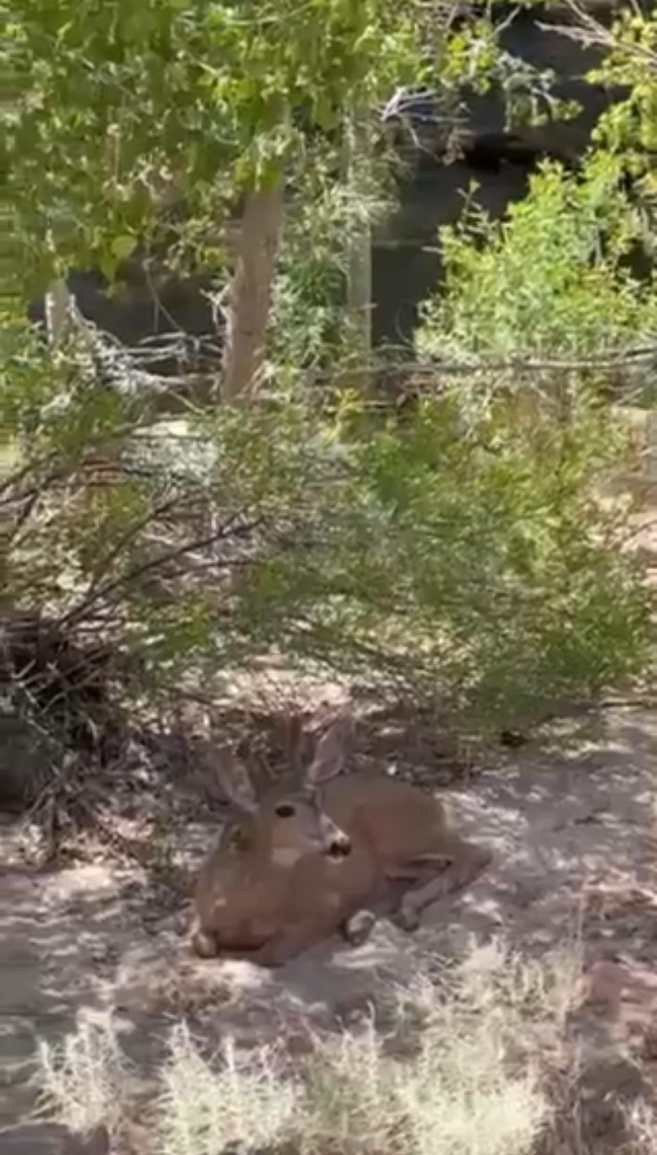 走马观花第一站是Zion国家公园,一只鹿悠悠闲闲地躺卧在路边,对来来往往的人流毫无戒备。这大概也是游客整体素质保障下的产物,否则它祖上八辈早学会一听脚步声就钻山沟去了。