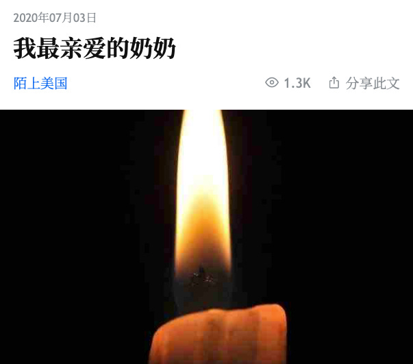 二零二零年七月三日周五,下午一点三十八分,我的奶奶没有了呼吸。